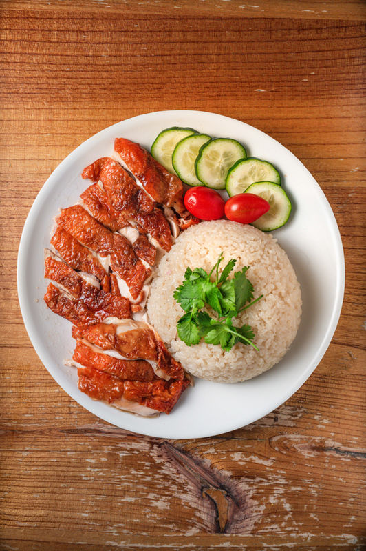 Chicken rice is considered one of the national dishes of Singapore and a major part of our hawker Centre culture. a whole chicken is poached in boiling water, and the resulting broth is skimmed with pandan leaf and lemon grass, producing the special flavored rice. Bite Sized pieces of the chicken is then served with this fragrant rice and a complementary sauce. There are variations such as steamed chicken and roasted chicken